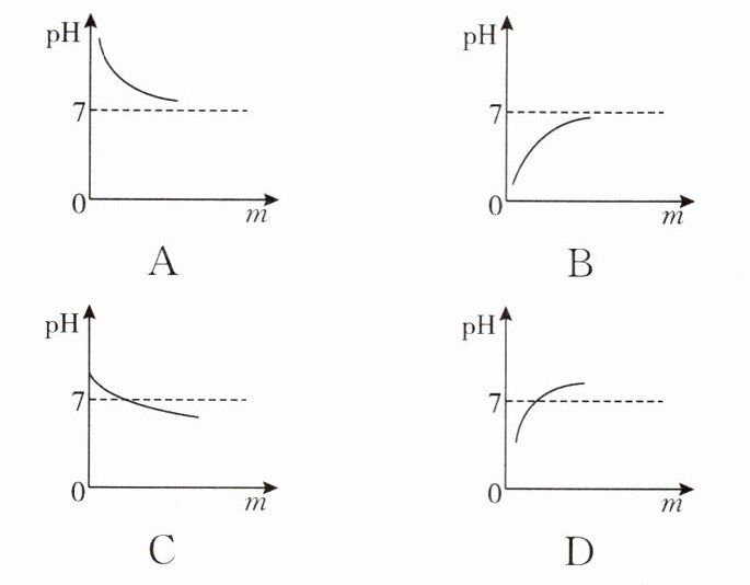 12. 下列能表示向盐酸中加入大量水时,其pH变化的曲线的是(横坐标表示加水质量,纵坐标表示溶液pH)(