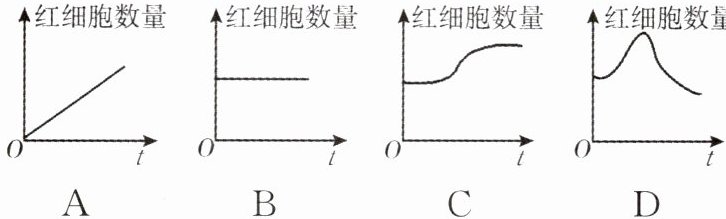 10. 下列曲线中,能正确表示人从平原迁移到海拔4000m高原一段时间后,血液中红细胞的数量变化的是 (