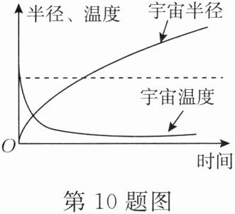 10. 如图所示为大爆炸宇宙模型中宇宙半径、温度与时间之间的关系,从图中可以看出 (