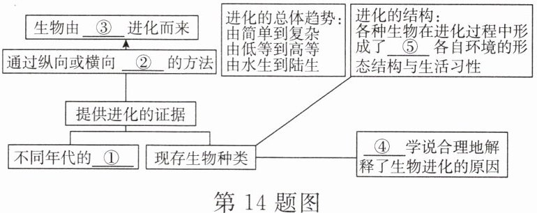 ①化石 ②对比 ③原始生命 ④自然选择 ⑤适应
