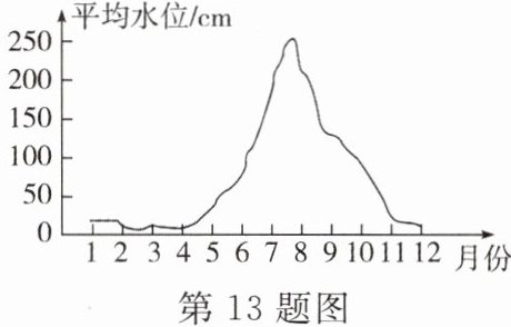 13. 如图所示为某湖泊近100年来每个月的平均水位变化图。在长期的变化中,能终年生存于该湖泊的鱼类最可能具有的特征是(