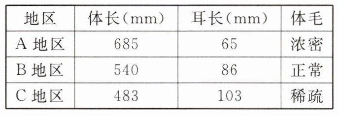 。(3)对A、B、C三地区动物的外部形态起决定作用的因素为
