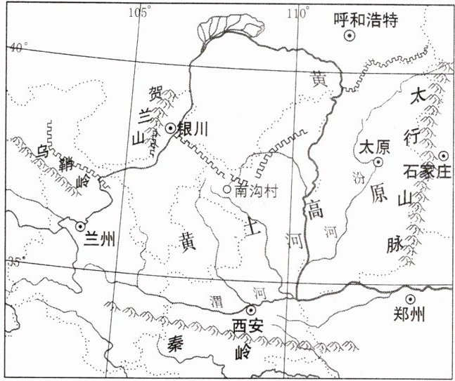 探究资料 “荒山秃岭都不见,疑似置身在江南。只缘退耕还林好,一路青山到延安。”这首流传在百姓间的打油诗,描述着今日的延安景色。在延安市吴起县南沟村,抬头看,满目青山,低头看,碧水汪汪,很难想象这是坐落在陕北的小山村。在过去的近30年里,这个小山村实现了从“一棵树”到“一片林”的蜕变。南沟村已成为全国退耕还林的一面旗帜。下图示意南沟村位置。