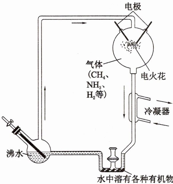 2.如图是米勒模拟原始大气合成有机物的实验装置,有关叙述错误的是(