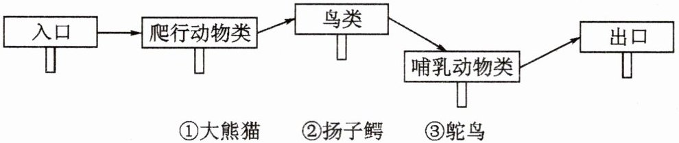 7.乐乐按照规定路线(如图)在动物园参加研学活动。①~③动物的“出场”顺序依次是(