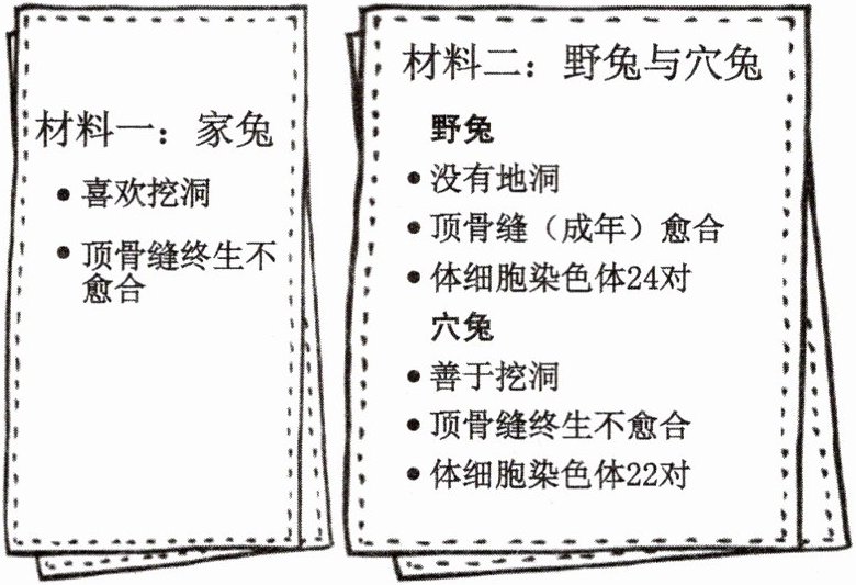 (2) ①穴兔 ②家兔与穴兔都善于挖洞 (或家兔与穴兔的顶骨缝终生不愈合) ③检测家兔的染色体数目