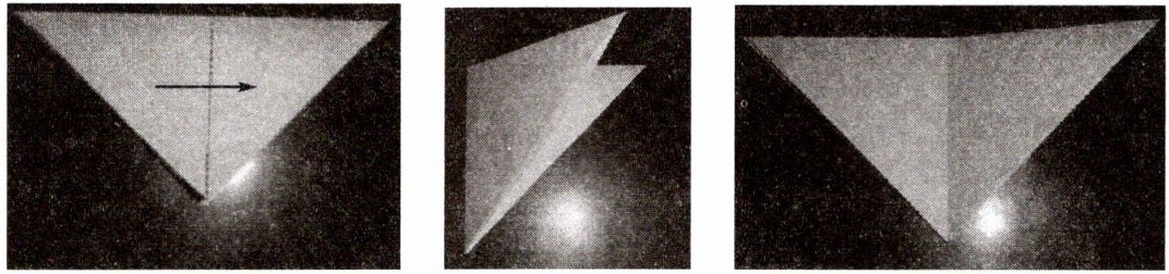 2. 将左角向右沿着中线折叠,利用了正方形的对称性,中线是正方形的一条对称轴。