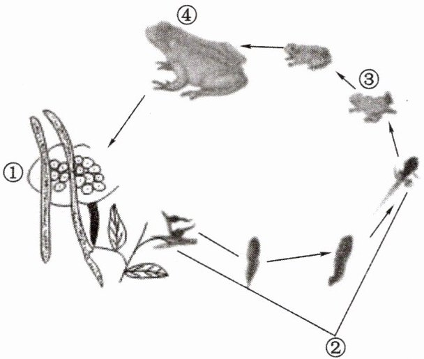 B.图中②生活在水中,有尾能游动,用肺和皮肤呼吸