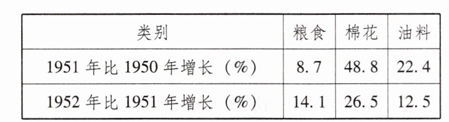 2. 下表是1950年至1952年我国主要农产品产量增长情况,这些成就主要得益于(