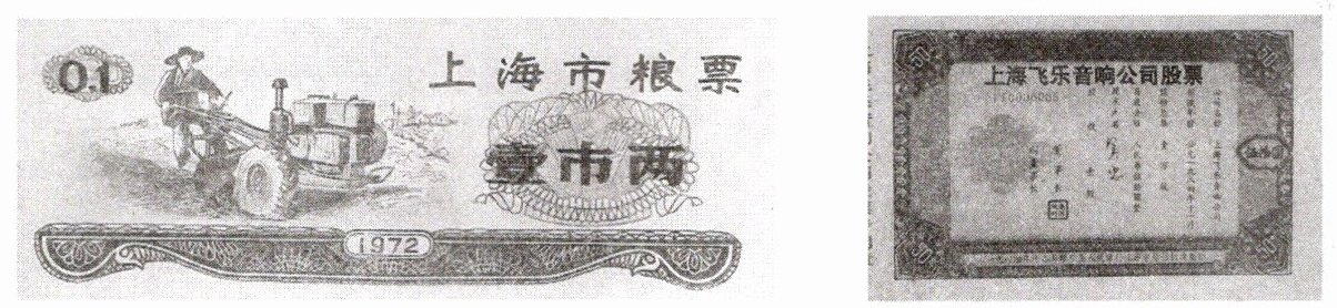 4. 下图是上海在不同时期发行的粮票与股票,其反映了