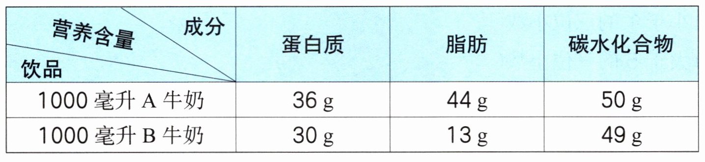 4. 两种不同牛奶饮品所含营养成分如下表。