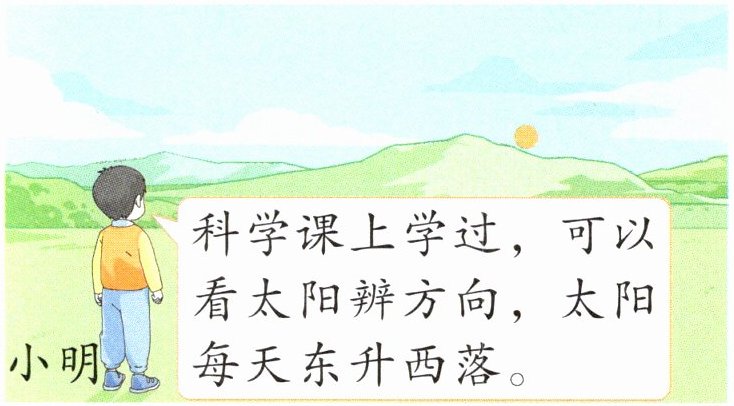 (1)早晨太阳从东方升起,所以小明面向太阳时,前面是东,后面是西(与东相对),左面是北,右面是南。