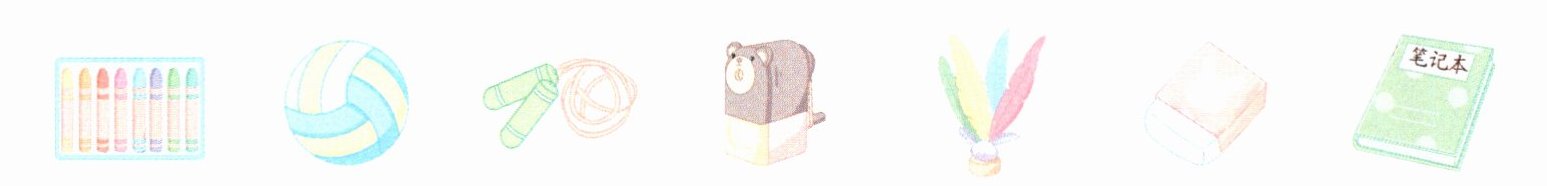 1. 在文具下面画“○”,在运动器材下面画“△”。