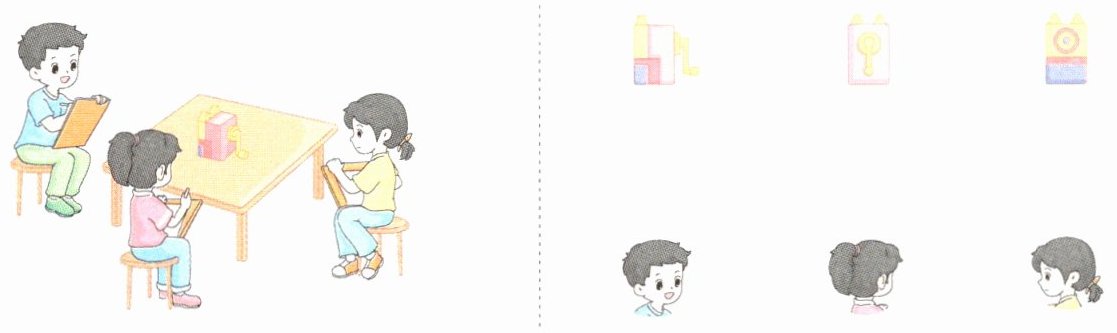 1. 下面右边的三幅图分别是谁看到的? 连一连。