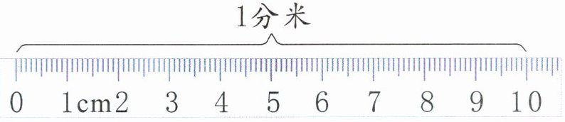 (1)在直尺上,10厘米的长度就是1分米的长度,所以1分米= (