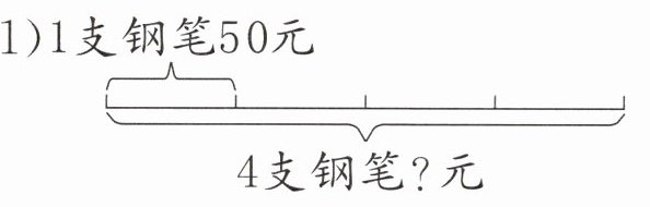 解析:本题考查利用乘法口诀解决简单的乘法应用题,通过观察图可知是求$4$个$50$是多少,用乘法计算。