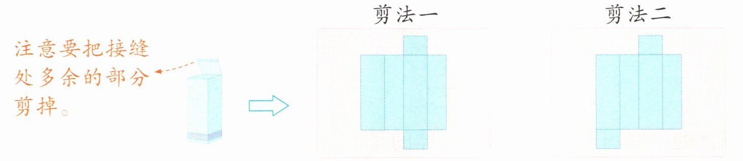 (2)同样的纸盒,剪开的边不同,得到的图形也不同。