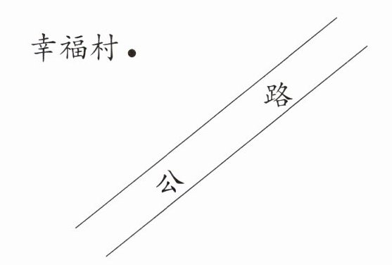 8. 幸福村准备修一条柏油路连接公路。请你帮助幸福村设计一条最短的路线,并在图上画出来。