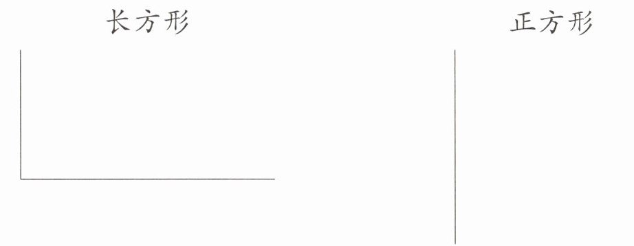 2. 下图是长方形的两条边和正方形的一条边,把它们画完整。