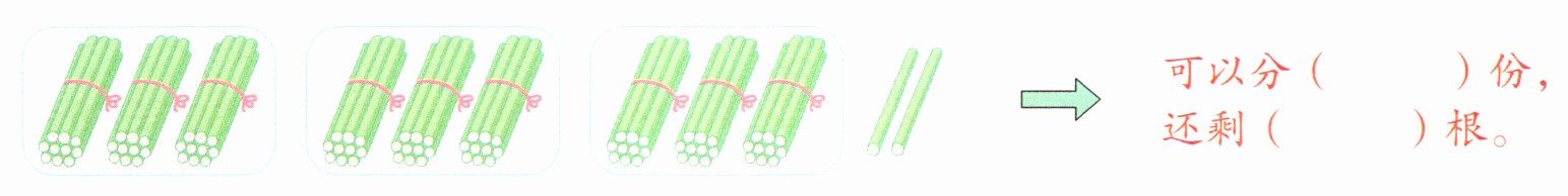 9捆零2根小棒表示92,每3捆(30根)小棒分1份。
