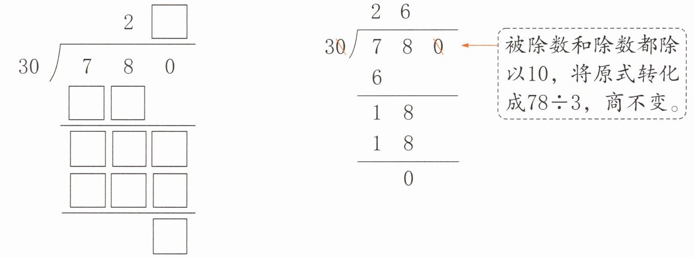 方法一:用商是两位数的笔算方法计算。 方法二:用商的变化规律进行简算。