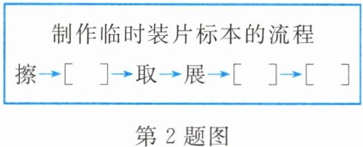 2. 如图所示是制作临时装片标本的流程图,图中空缺处应该依次填写的是 ( )