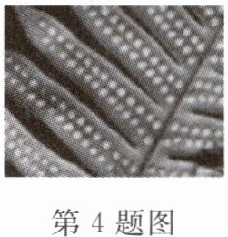 4. 植物园热带雨林馆内生长着一种陆生植物,其叶片背面排列着密密麻麻的褐色小颗粒(如图所示),不开花,也从不结果,你推测这种植物属于 (
