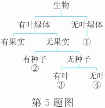 5. 如图是某同学建立的生物分类图,其中①~④各代表一种生物。下列符合该图分类的一组生物是 (
