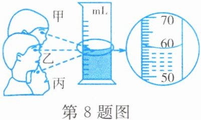 mL。三名同学在用该量筒测液体体积时,读数情况如图所示,其中乙