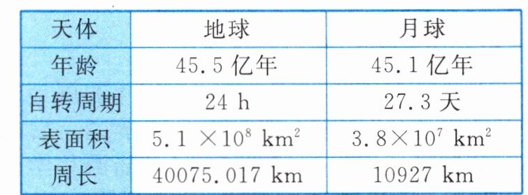 9. 地球绕太阳公转的周期为 365.2422 天,月球绕地球公转的周期为 27.3 天。根据表中数据,下列叙述中最符合事实的是 (
