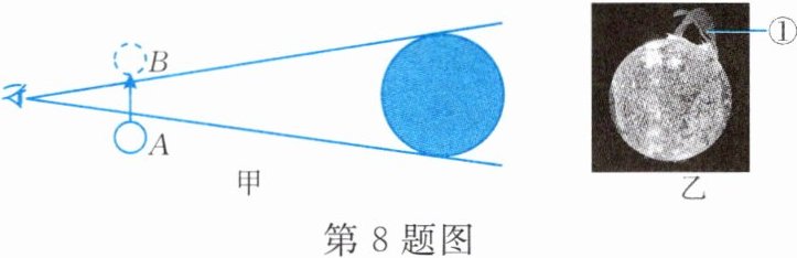 (1)在如图甲所示的模拟实验中,将小球由 A 向 B 移动,观察到大球被小球遮挡的过程。该实验模拟的是