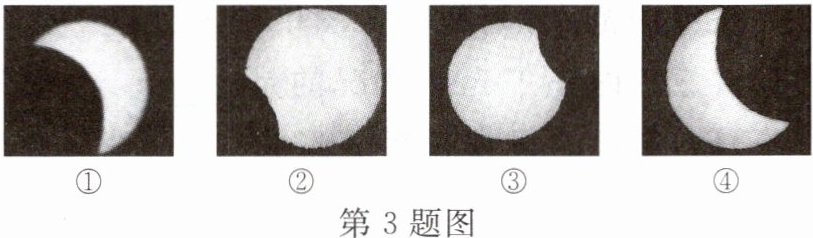 3. 日全食的整个过程非常壮观,如图所示,下列能正确反映一次日全食过程各阶段顺序的是 (