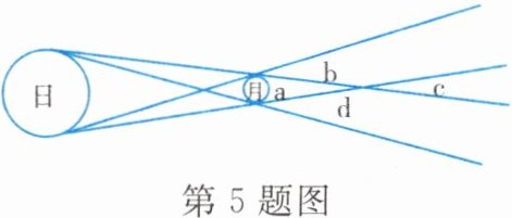 5. 如图所示,地球进入下列哪个区域会发生日全食 (