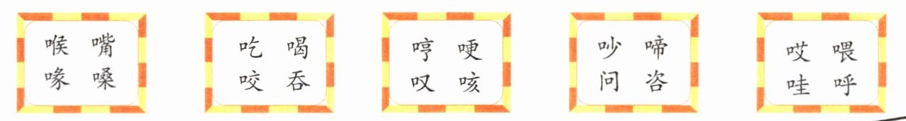 口字旁的字在汉字中使用频率非常高,我收集了一些带“口”的字,并按照特点将它们分了类,你能找到分类的依据吗?
