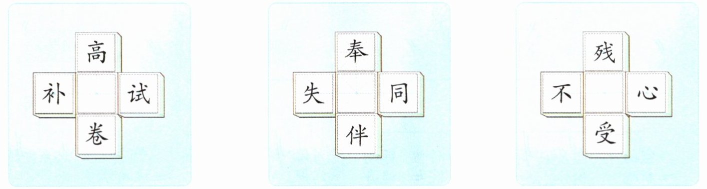 游戏规则:在给出的十字格中间填字,使其和任意方向的字都能组成词语。