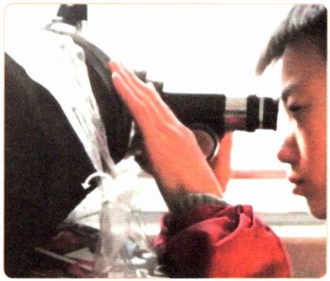 With little money, he could only buy the lenses (镜片) online. He had to use waste materials to make other parts of the telescope. For example, the telescope pipe was made from a waste plastic pipe, and the mount came from parts of his personal drum set.