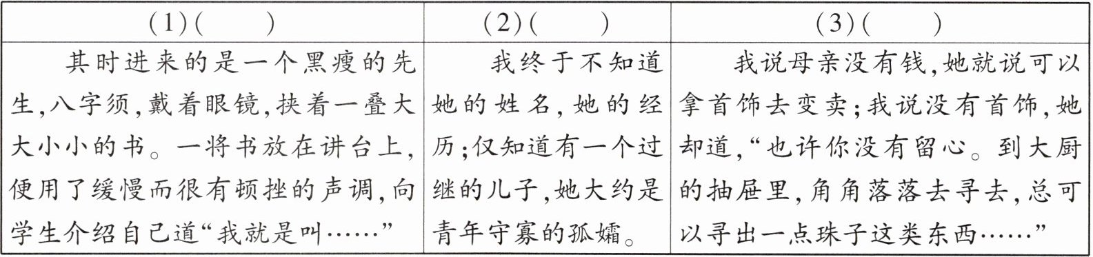4. 衔接初中 (2024 陕西西安 JDFZ 分班考)请在下面括号内填入《朝花夕拾》中相应人物的选项。
