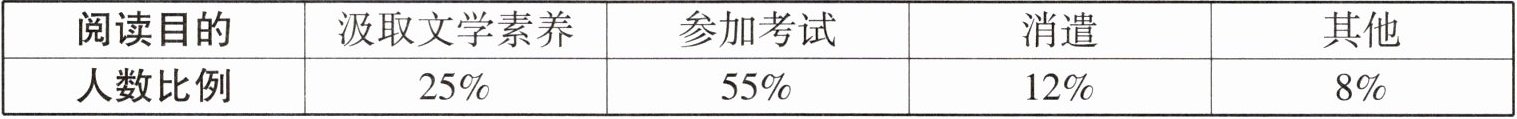 |阅读目的|汲取文学素养|参加考试|消遣|其他|