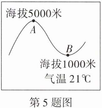5. 衔接初中 (2023 云南昆明 YNDXFS 中学分班考)研究表明,海拔每上升1千米,气温下降约$6^{\circ }C$,下图中点A的气温大约是( )。