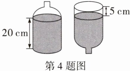 4. (2024 陕西西安 GDFZ 分班考)如图,一个容积为 2.5 升的饮料瓶,瓶中饮料深 20 厘米。把饮料瓶盖紧倒立,这时空余部分高 5 厘米,则瓶中装有饮料( )升。