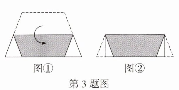 3. 衔接初中 (2024 陕西西安 TYBHZ 中学分班考)小明用一张梯形纸做折纸游戏,先上下对折,使两底重合,可得图①,并测出未重叠部分的两个三角形面积和是 20 平方厘米。然后再将图①中两个小三角形部分向内翻折,得到图②,经测算,图②的面积相当于图①的5/6,这张梯形纸的面积是( )平方厘米。
