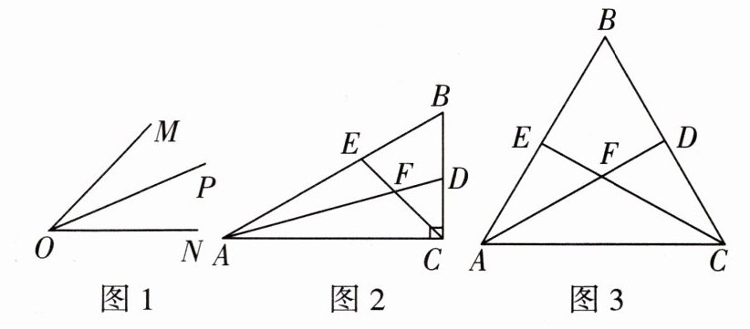 如图1,分别在OM,ON上取点A,B,使OA=OB,在OP上任取一点C,连接AC,BC,则△OAC≌△OBC.