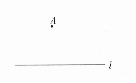 7 [2024 陕西中考]如图,已知直线 l 和 l 外一点 A,请用尺规作图法,求作一个等腰直角三角形 ABC,使得顶点 B 和顶点 C 都在直线 l 上。(作出符合题意的一个等腰直角三角形即可,保留作图痕迹,不写作法)