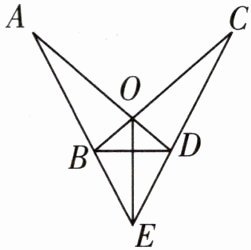 8 [2024 宿迁沭阳月考]如图,AD 与 BC 相交于点 O,OA = OC,∠A = ∠C,BE = DE。求证:OE 垂直平分 BD。