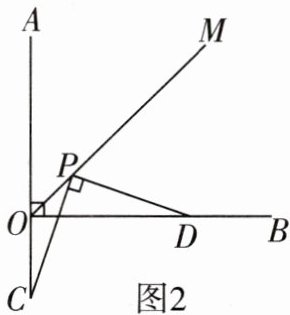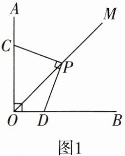 13 教材习题变式已知∠AOB= 90°,OM是∠AOB的平分线,D是边OB上一点,将三角板的直角顶点P在射线OM上移动,使一直角边经过点D,另一直角边与边OA交于点C.