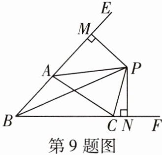 9 [2024南通启东折桂中学月考]如图,△ABC中,外角∠ACF,∠EAC的平分线CP,AP交于点P,PM⊥BE,PN⊥BF.下列结论中,正确的个数为( )