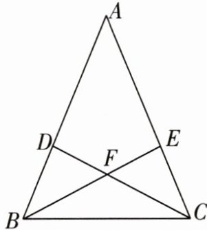 (1)如图,点$D在AB$边上,点$E在AC$边上,$BD = CE$,$BE与CD交于点F$。求证:$BF = CF$。