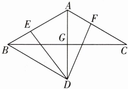 14 [2024南通启东期中]如图,在$\triangle ABC$中,$AB = AC$,$∠BAC = 120^{\circ}$,$AD\perp BC$,垂足为$G$,且$AD = AB$,$∠EDF = 60^{\circ}$,其两边分别交边$AB$,$AC于点E$,$F$。