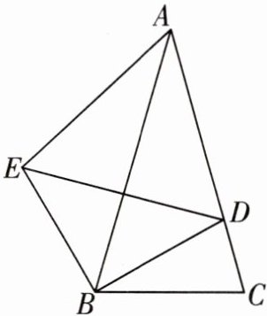 15 [2025苏州盛泽初中教育集团月考]如图,在$\triangle ABC$中,$AB = AC$,$∠ACB > 60^{\circ}$,在$AC边上取点D$,使$BD = BC$。以$AD为一边作等边三角形ADE$,且使点$E与点B位于直线AC$的同侧。