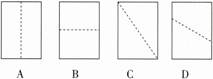 11 新考法 [2025镇江期中]小明准备用一张长方形A4纸片,通过折叠两次的方式找到一些折痕和点,然后用直尺连线画出一个等边三角形。下面哪个图应该是他的第一次折痕?(